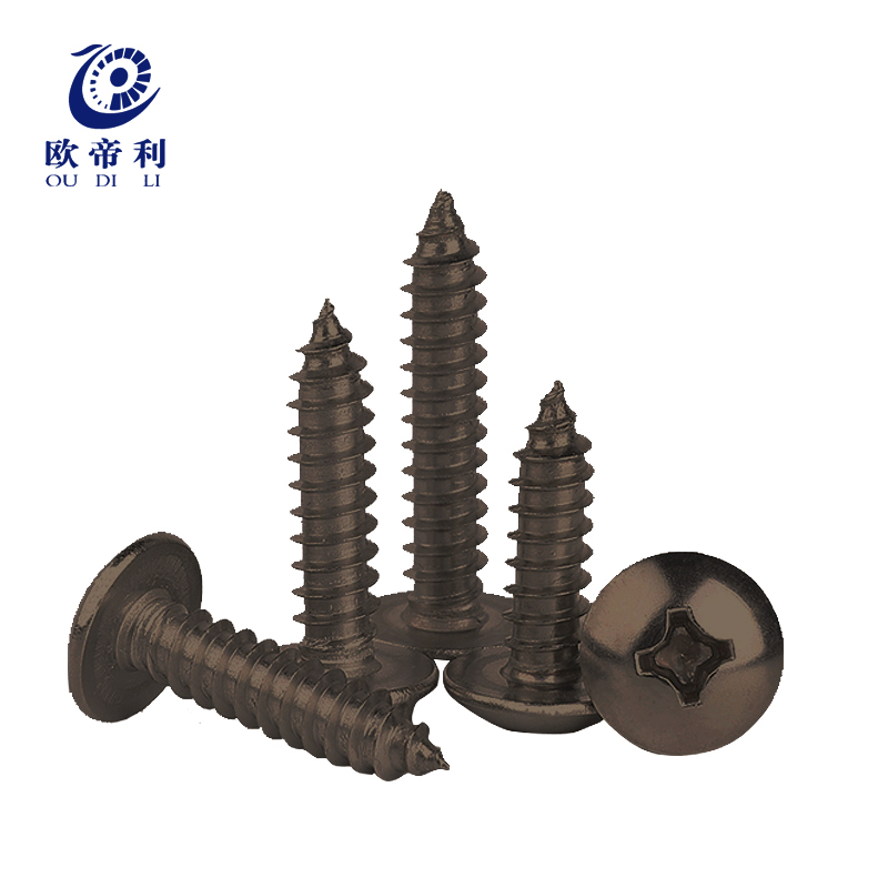 Black nickel color cross large flat head self-tapping screw Mushroom head umbrella head wood tooth self-tapping nail wood screw M3M4M5M6