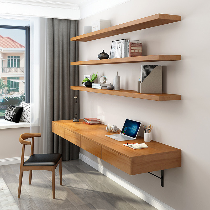 Nordic solid wood desk bookshelf combination bookcase home wall hanging desk loft computer desktop table double