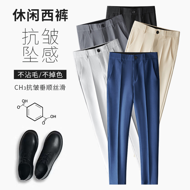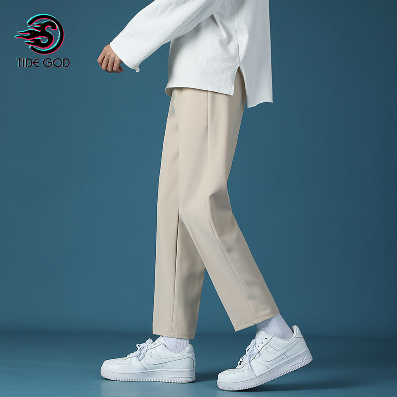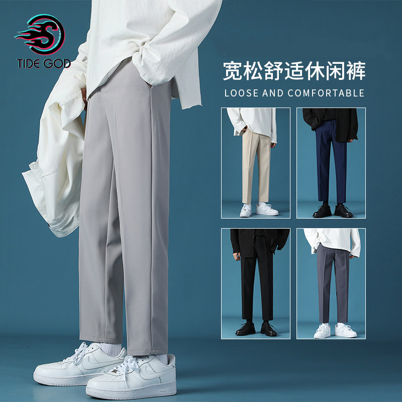 Men's casual Korean version of the trend trousers spring and autumn vertical straight tube loose nine-point pants summer thin ice silk long pants