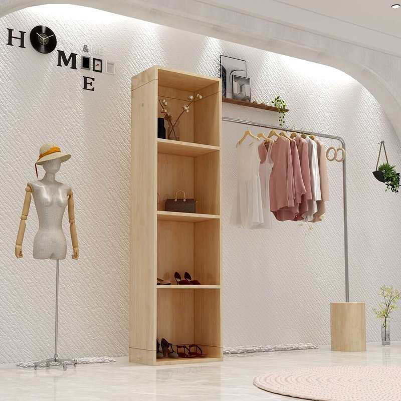 Clothing store display rack stainless steel solid wood combination display rack high-end women's clothing store clothes rail bag jewelry shelf