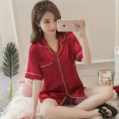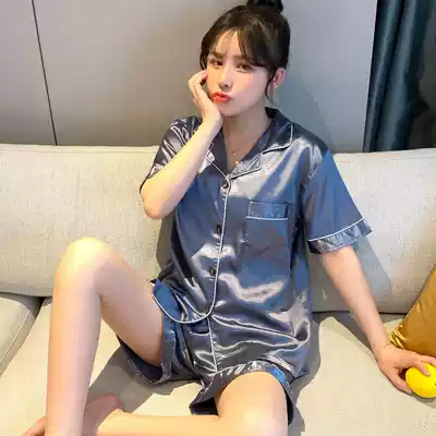 Ice silk pajamas ladies summer short sleeve thin sexy plus fat plus size simulation Silk Home suit two-piece suit