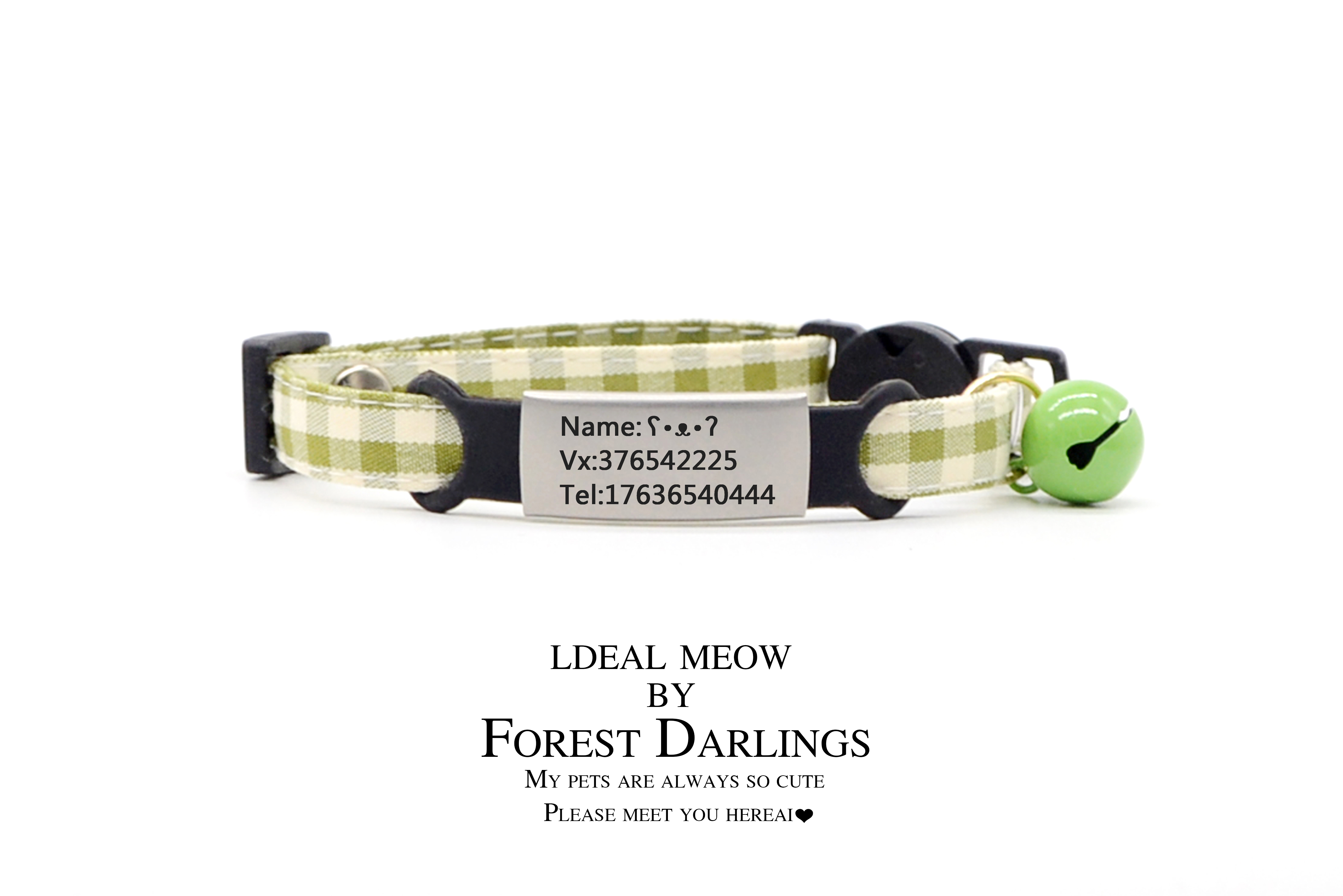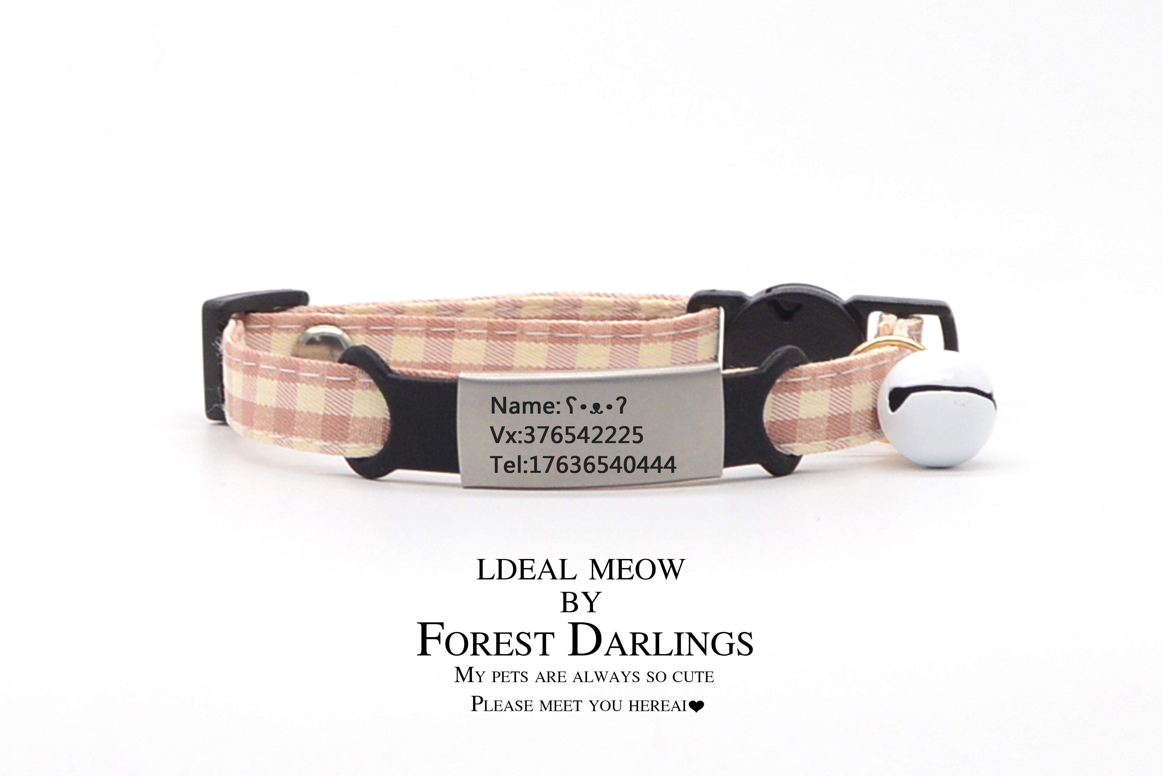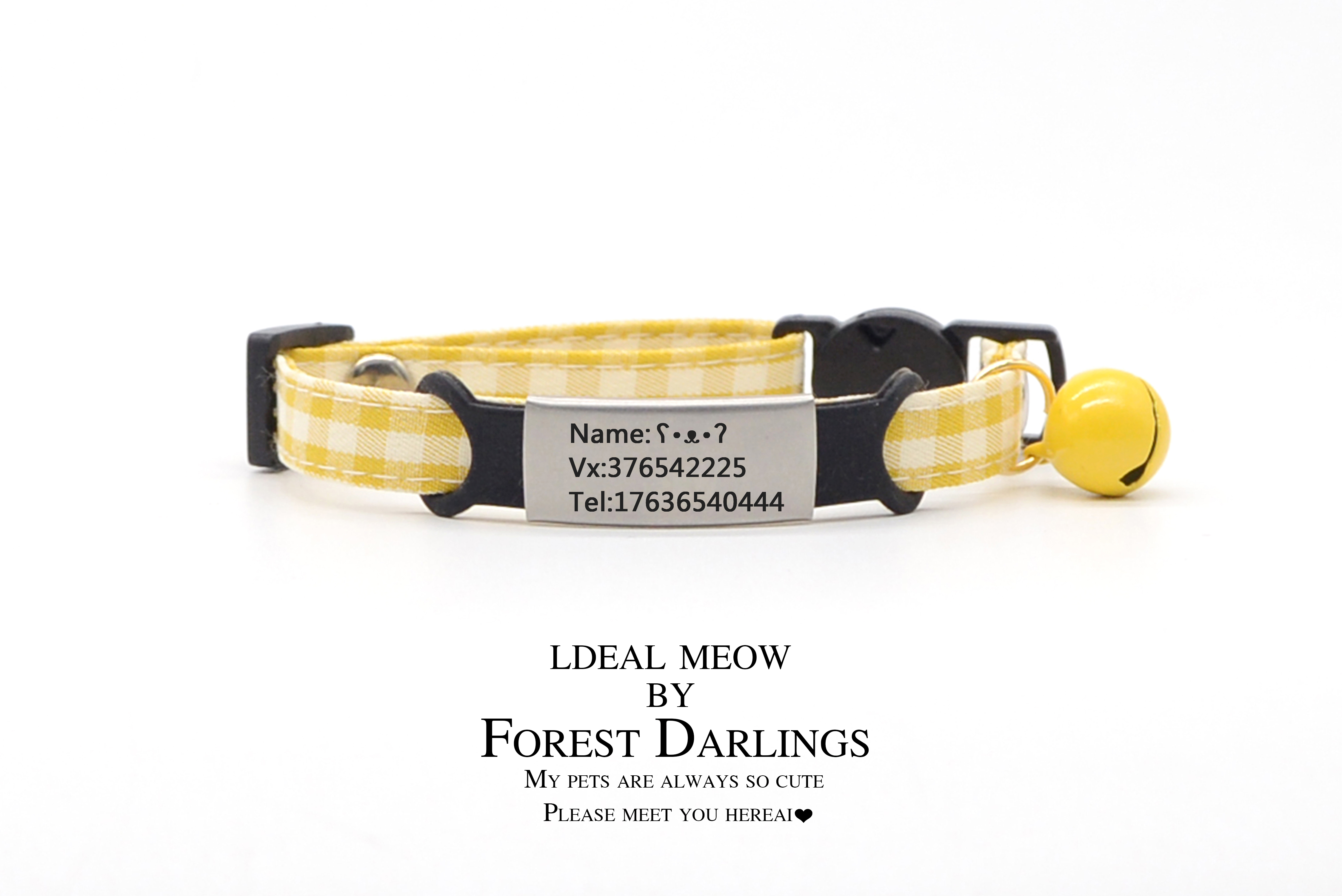 Kitty Anti Asphyxiation Collar Lettering Plaid Safety Buckle Identity Card Engraving Anti-Loss Card Cute Cartoon Bell