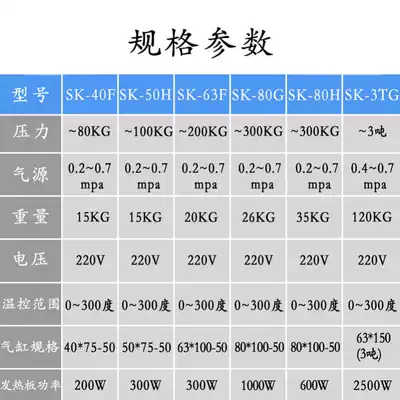 Temperature control wire () solenoid valve () temperature controller ()SK-40F Pneumatic Heat Press SK-50H Pneumatic Heat Press SK-63F Pneumatic Heat Press SK-80G pneumatic heat press S