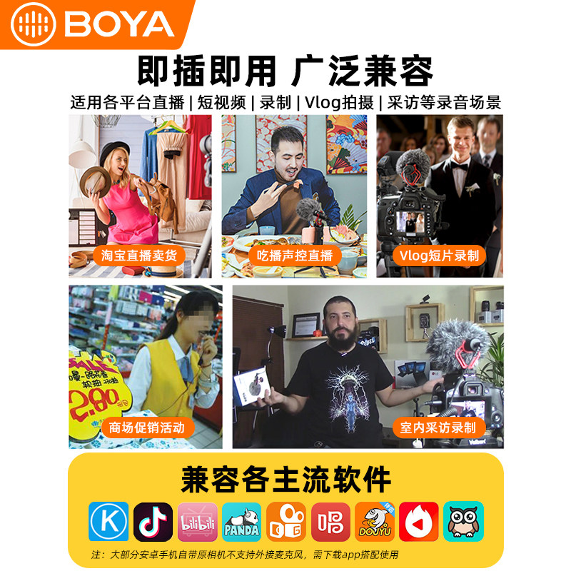 BOYA BOYA microphone MM1 camera mobile phone SLR microphone radio noise reduction microphone recording dedicated vlog Video computer live equipment full set of pointing capacitor dubbing sound