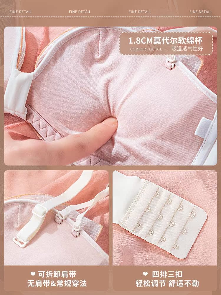 South Korean small breasts coaling underwear for women Summer free steel ring No shoulder strap non-slip collection of breast proof Drooping Bra Hood Suit