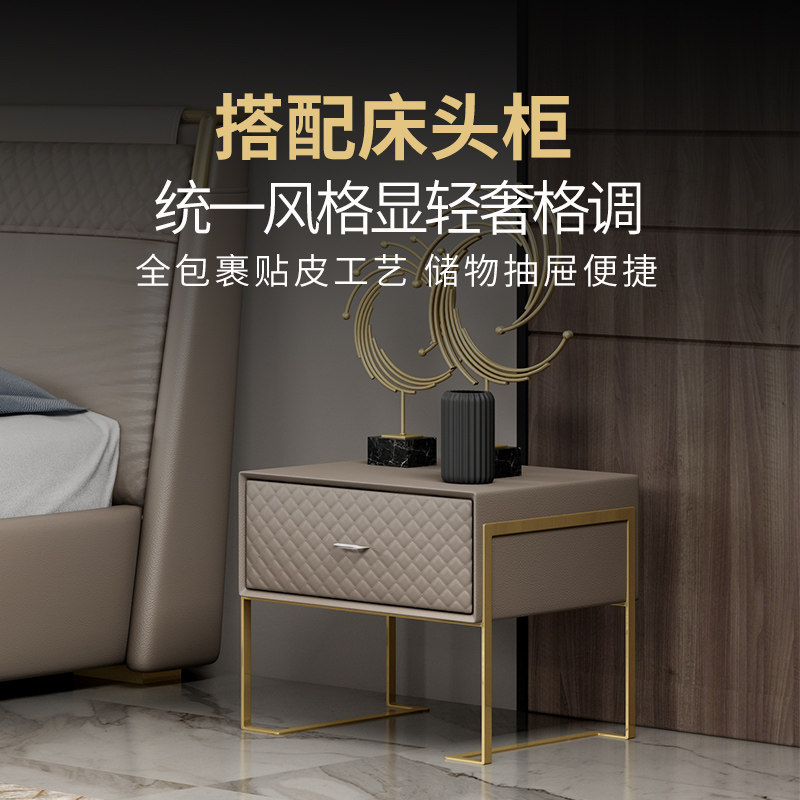 Nordic leather bed double bed 1 8m master bedroom modern minimalist minimalist soft bedside layer cowhide Italian light luxury leather bed