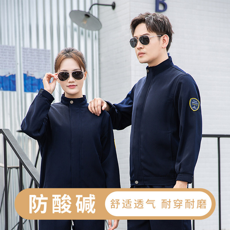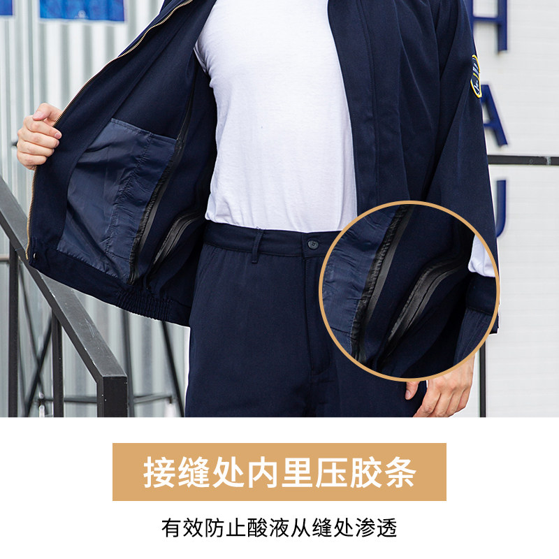 Summer anti-acid-base overalls suit men's dark blue anti-sulfuric acid-base anti-corrosion sulfuric acid chemical factory labor protection clothing
