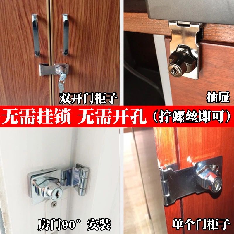 Thickened cabinet door lock door lock 90 degrees right angle door buckle safety door chain buckle bolt door bolt old-fashioned door lock