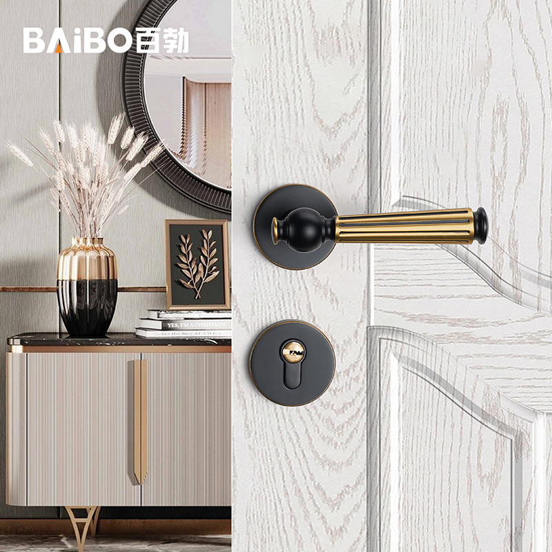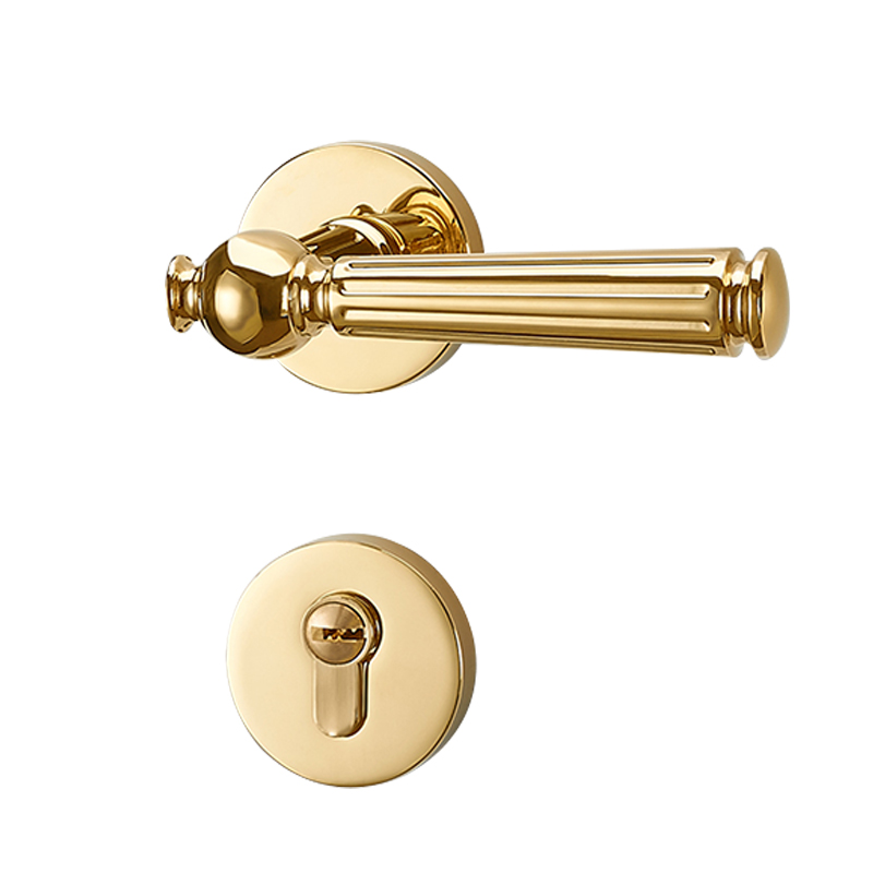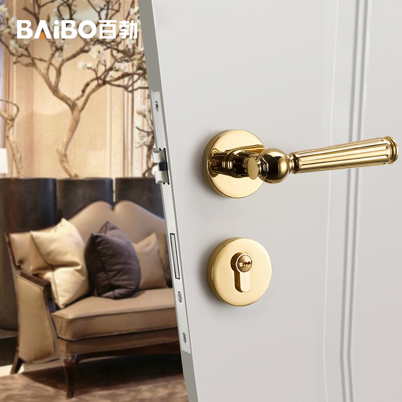 Golden door lock Indoor bedroom American door handle European magnetic mute room door lock Two-piece lock Household wooden door lock