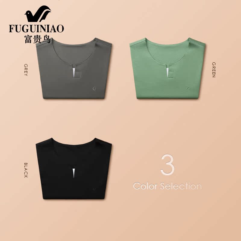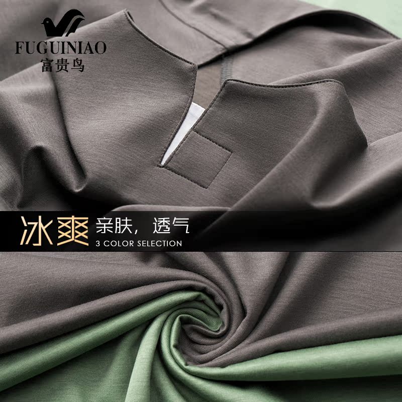 Fugui bird high-end silk light cotton men short sleeve T-shirt round collar half sleeve bottom-shirt male summer thin loose trend