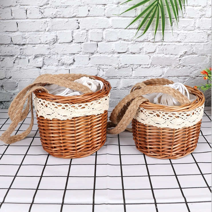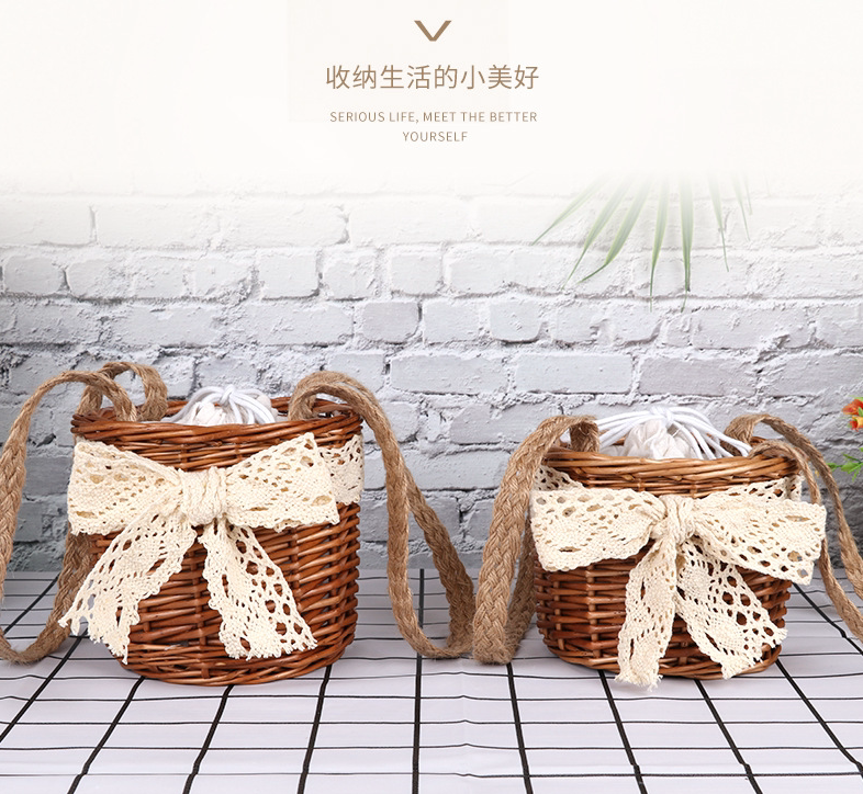 INS clothing store display rack Korean version new vines small bamboo basket decorated with hand basket children bamboo woven bag hanger