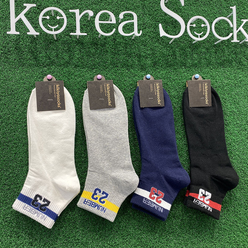 Korean Dongdaemun Spring and Autumn New Digital Striped Cotton Socks Spot Fashion Street Casual Men's Short Tube Socks