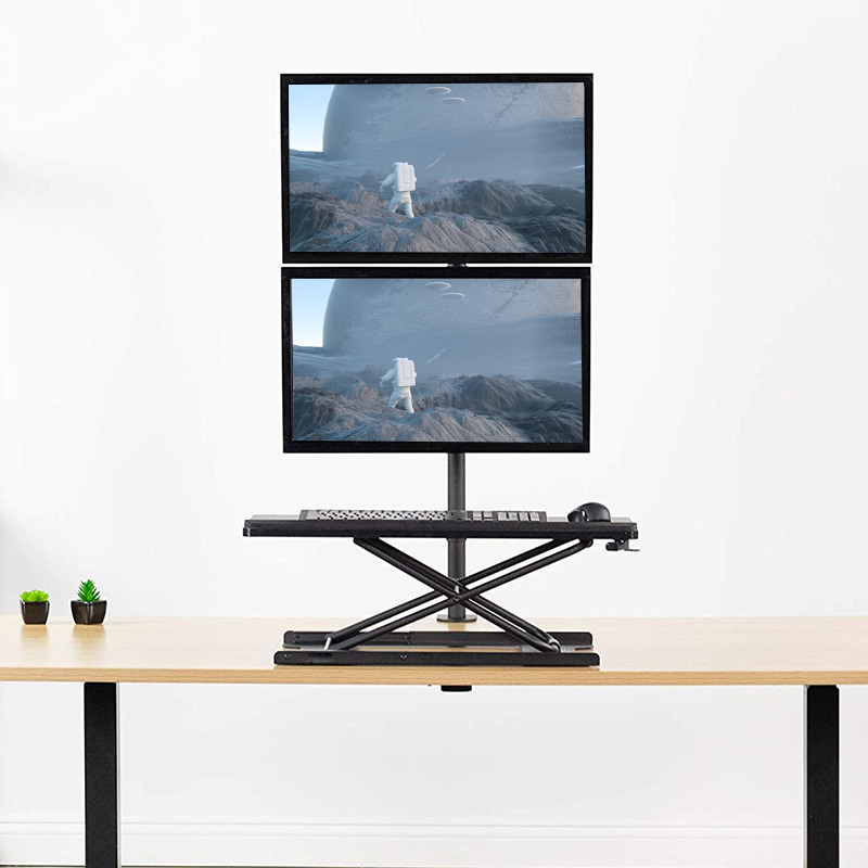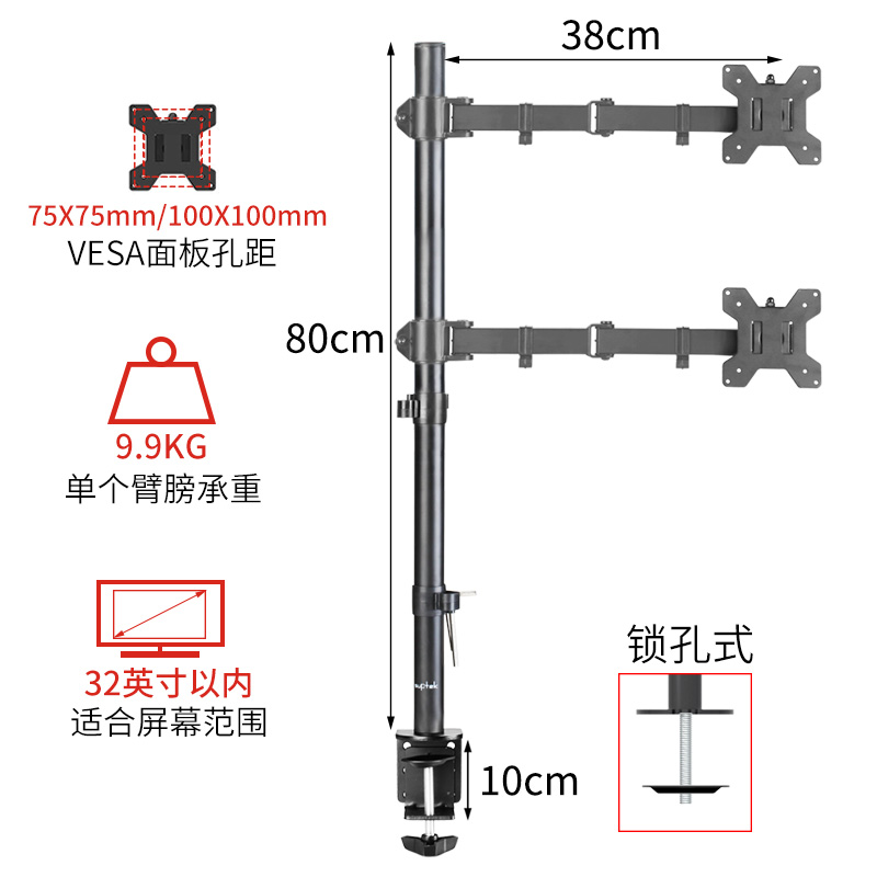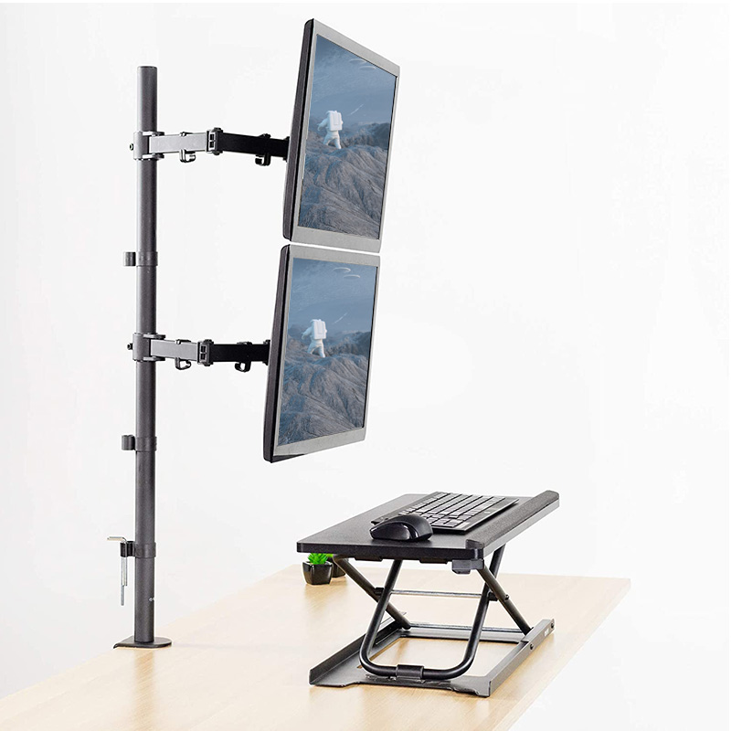 Dual-screen display bracket upper and lower screen splicing desktop desktop addition of high support frame lifting and telescopic rotation