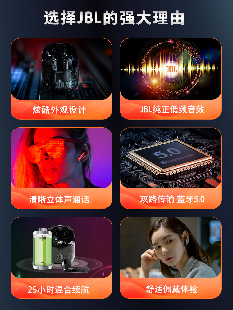 JBL T225TWS true wireless Bluetooth headphone mobile phone game headphone call half-in-ear stereo
