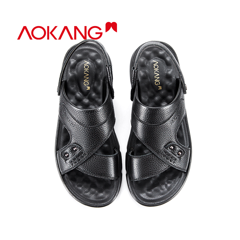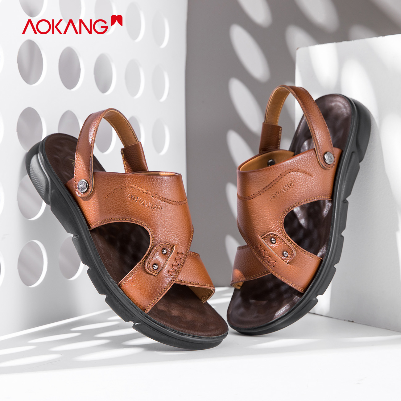 Okang sandals 2023 summer new casual beach shoes official leather slippers leather slippers two outdoor fashion