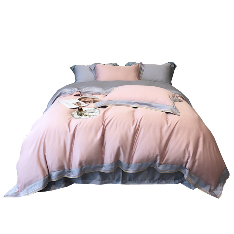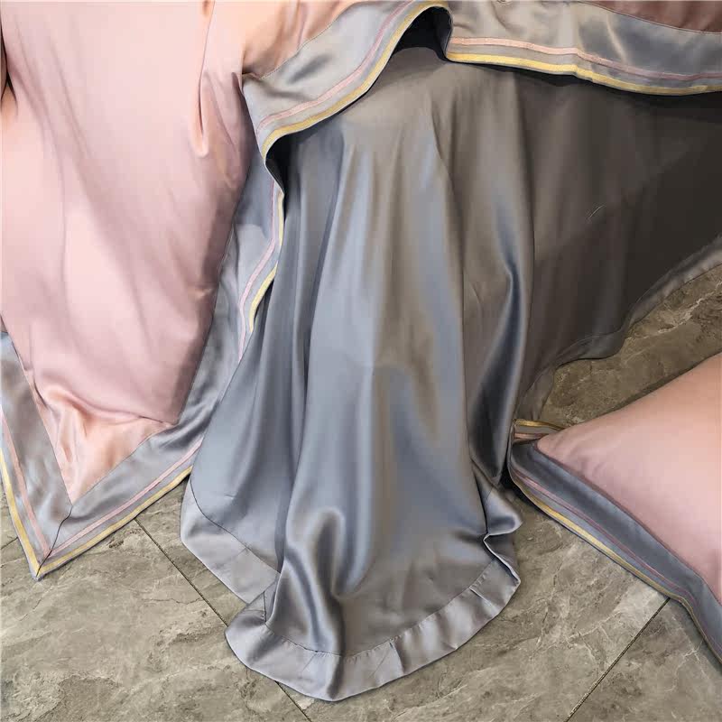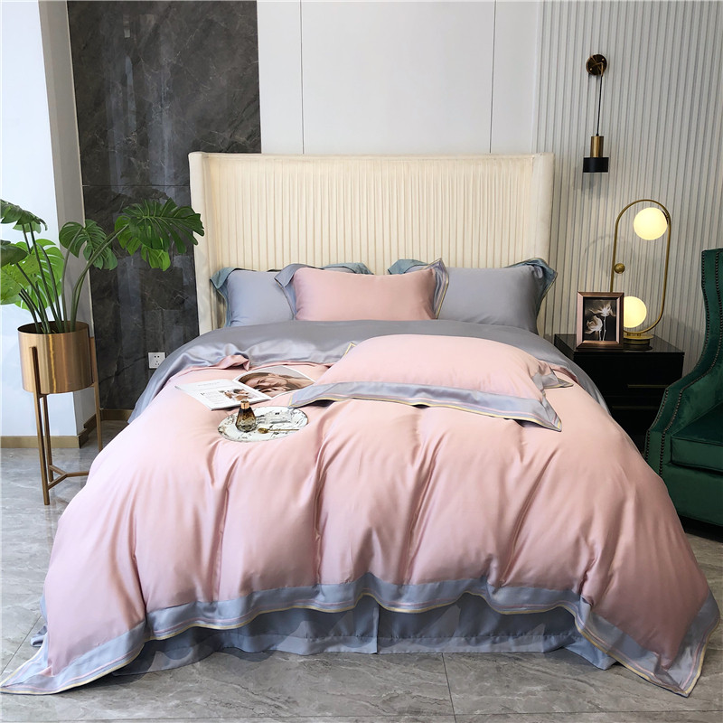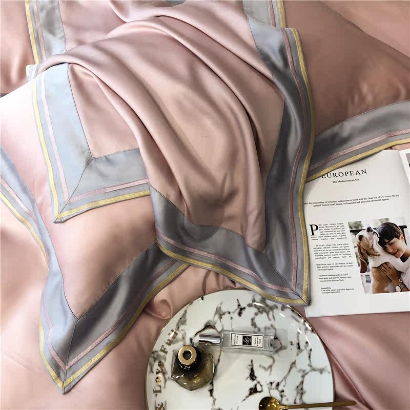 High end 120 Sky Silk Four Pieces of Vegetarian Color Naked Sleeping Ice Silk Bed Single Skin Embroidery Quilt Cover Cool Comfort Bed supplies