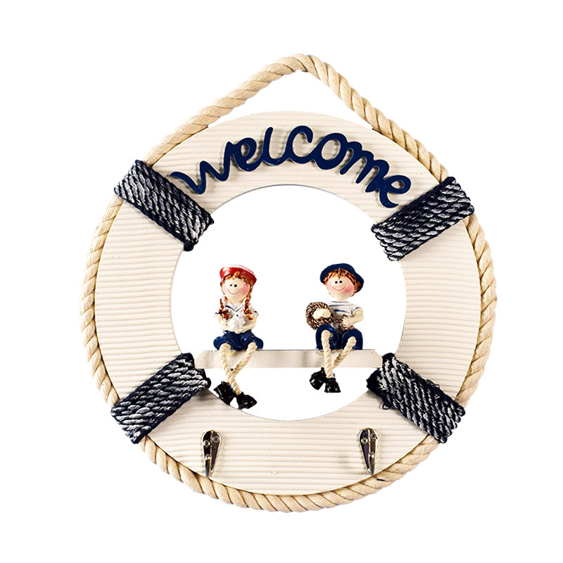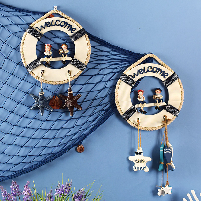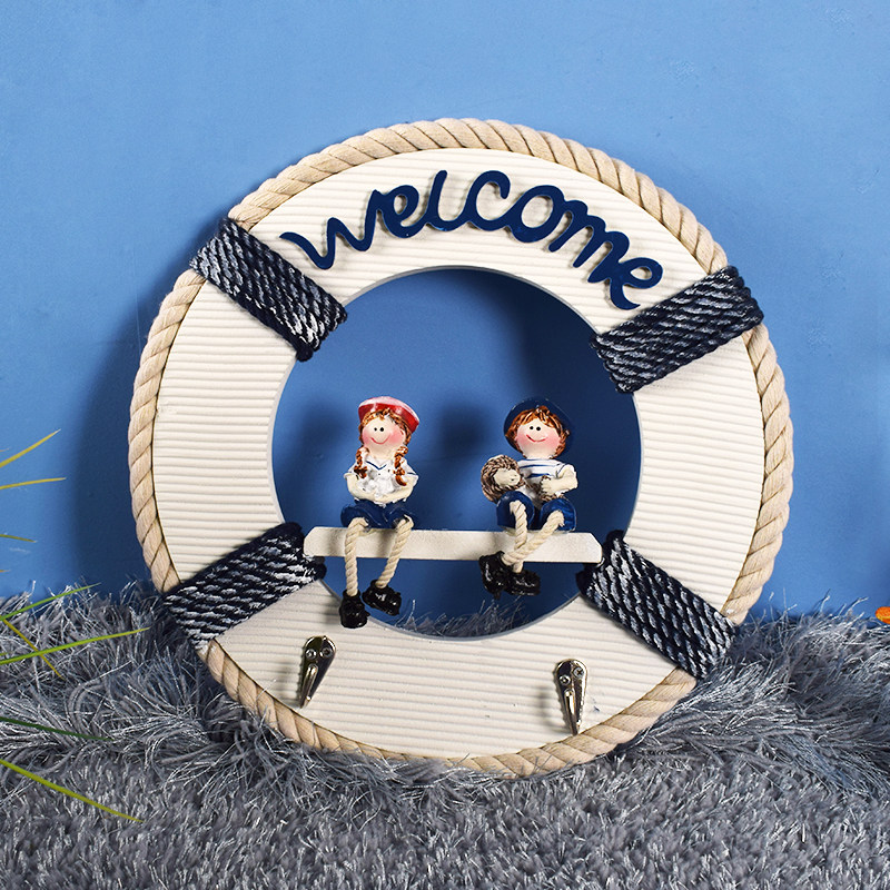 Mediterranean wooden life buoy decoration hook creative key hall porch coat hook room wall hanging