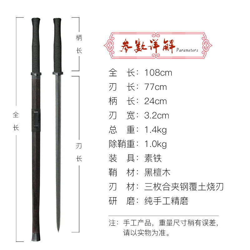 Longquan Deyuan Sword Shadow Sword One Paint Steel Eight-sided Sword Manganese Steel