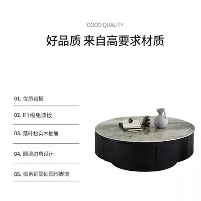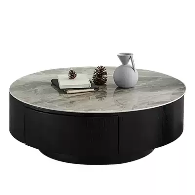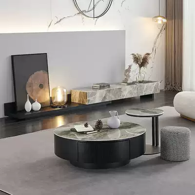 Light luxury Rock board round coffee table simple modern living room retractable large and small apartment solid wood coffee table TV cabinet combination