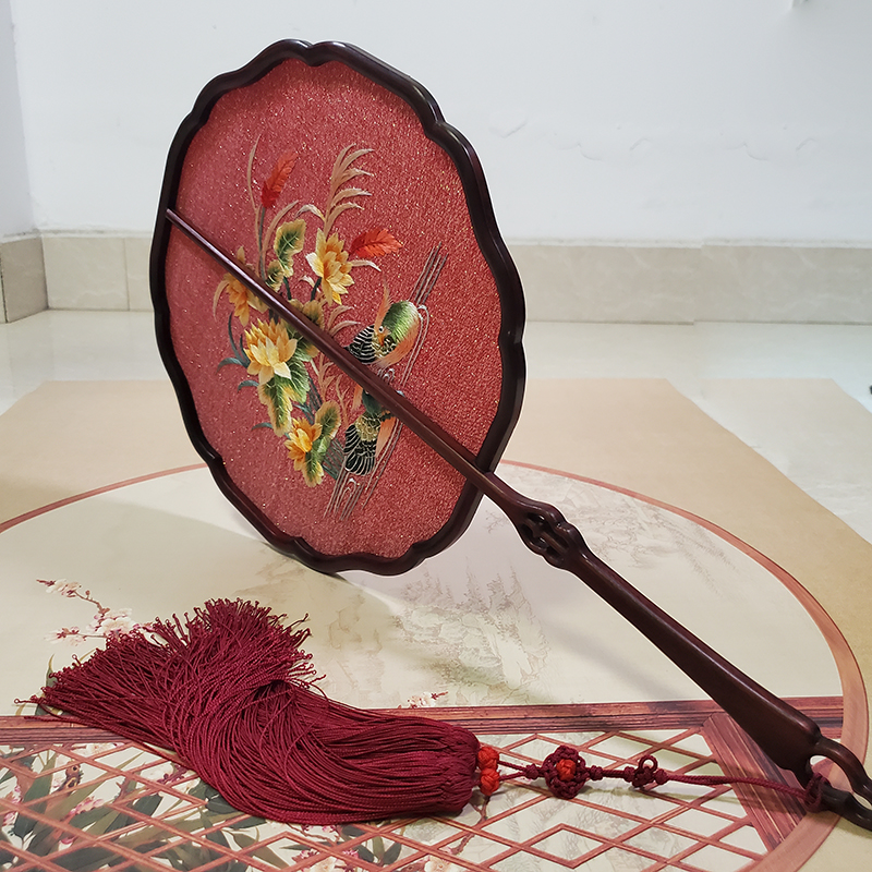 Guitangdong handmade double-sided Suzhou embroidery group fan gift ancient fan Chinese style Hanfu hi fan wedding fan mandarin duck lotus fan