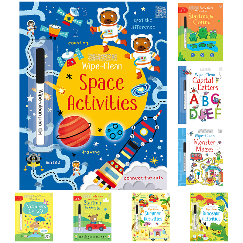 Pre-school preparation Learn to count math words Learn to run pen numbers 1~20 Numbers Red capital letters Monster maze shape pattern Ocean Airport holiday Dinosaur space graffiti Summer pirate