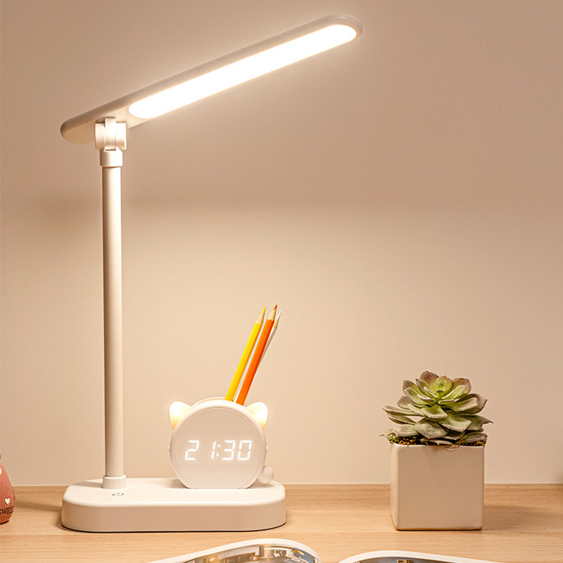 (w) kitty clock L-type pen holder table lamp