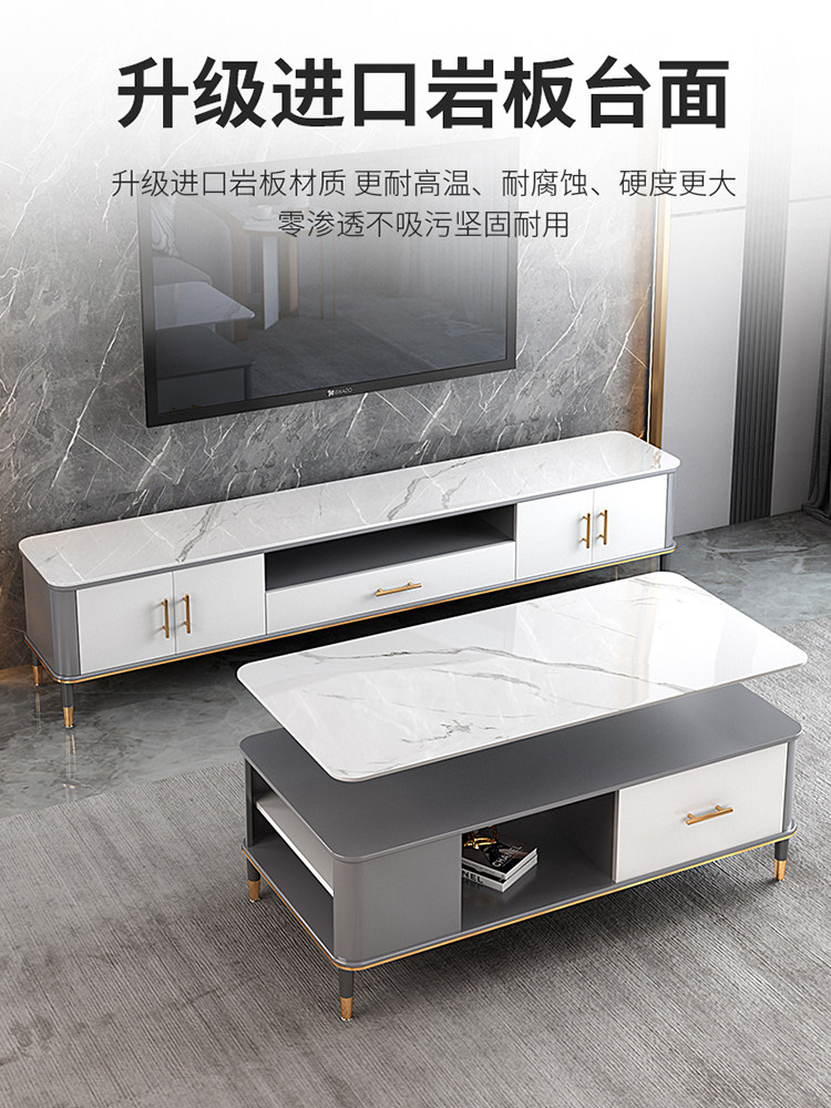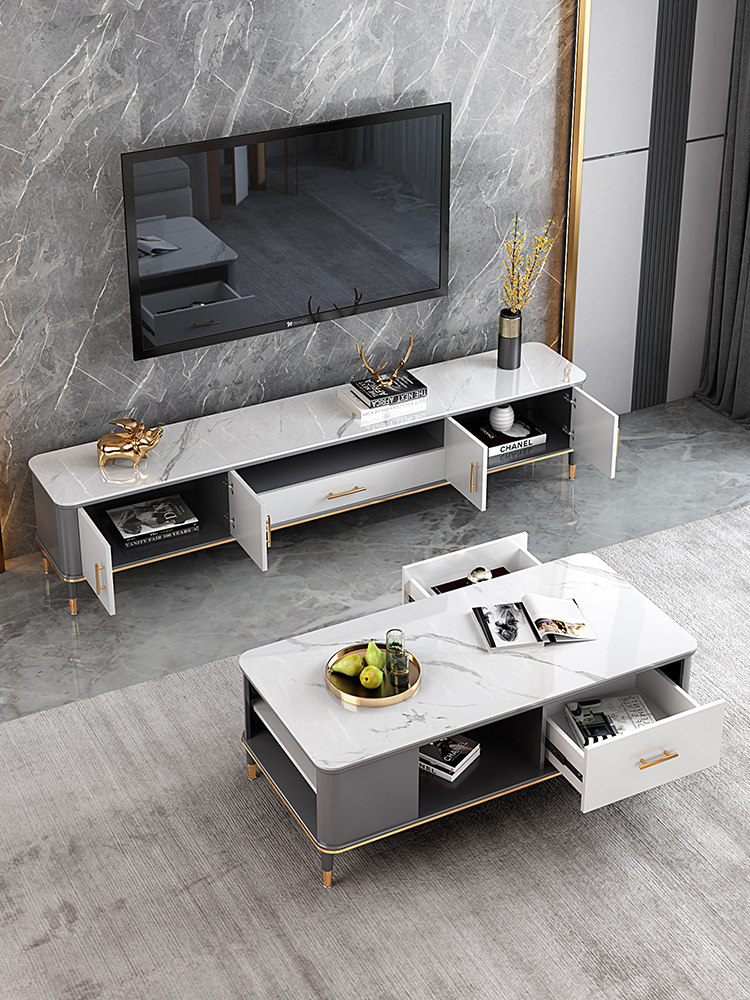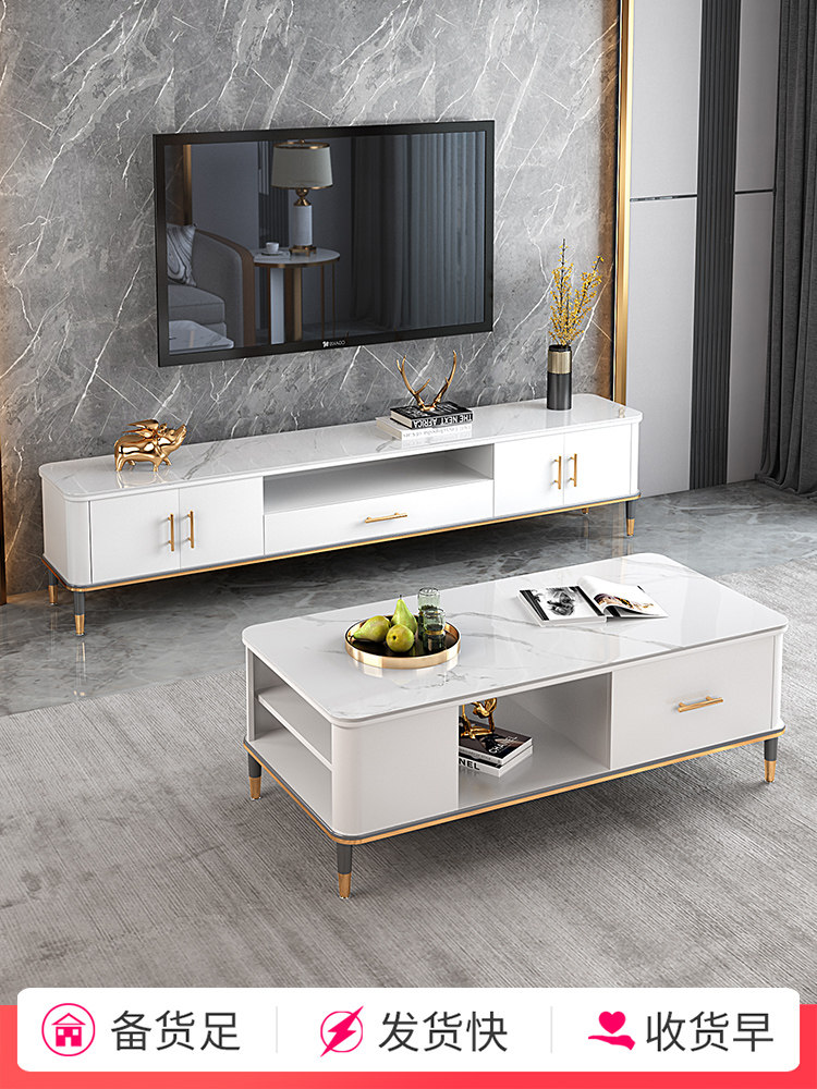 Rock plate TV cabinet Tea Table Group family with Nordic light extravagant bedroom TV cabinet modern minimalist living-room small family