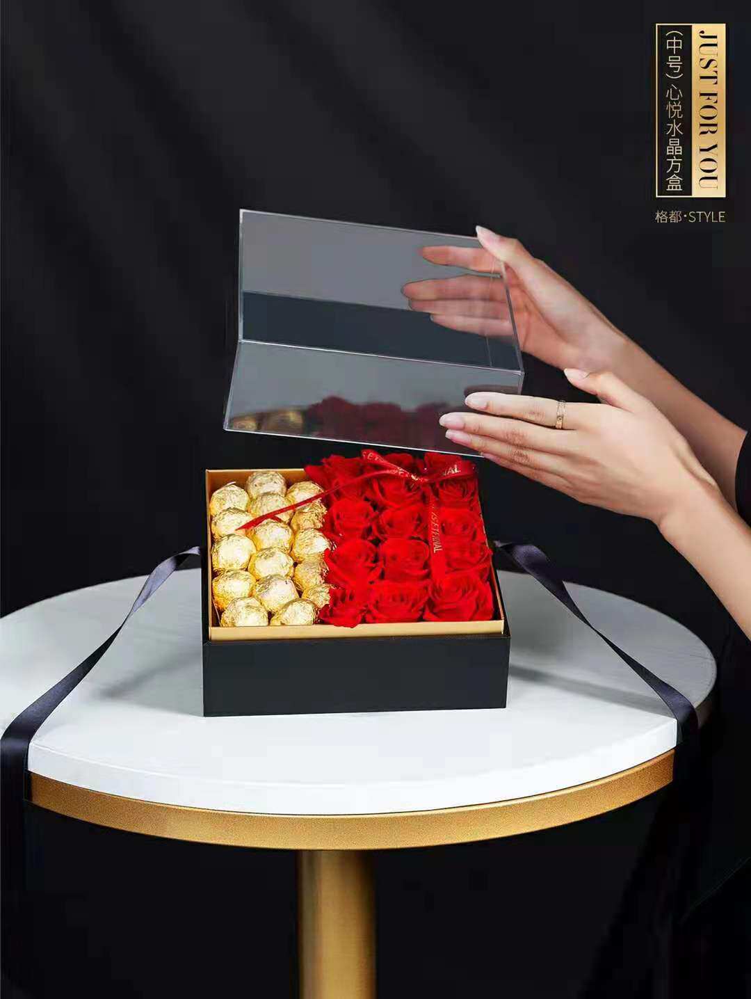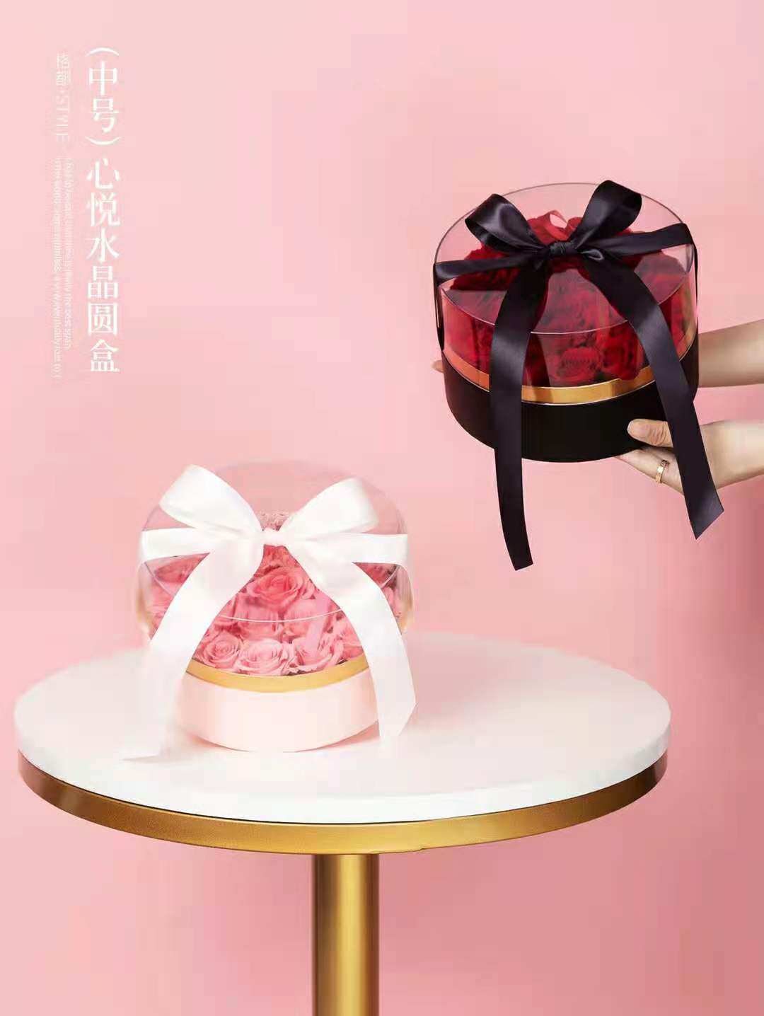 520 acrylic round square flower case transparent crystal floral box fresh flower gift wrapping gift box hand-holding flower case