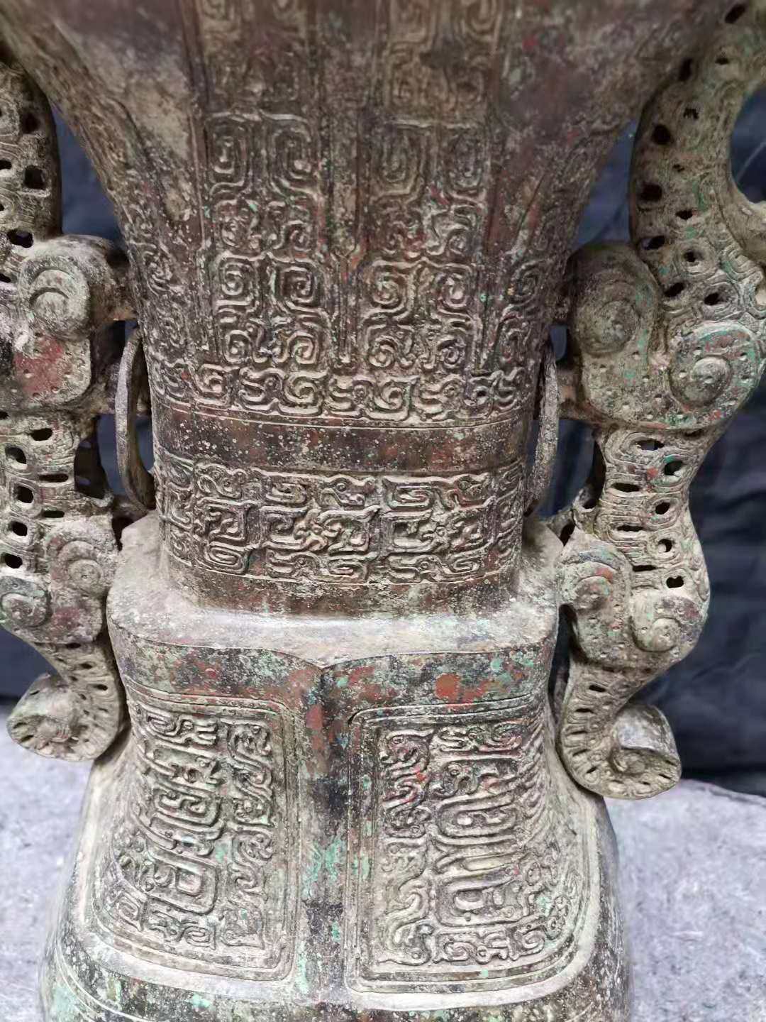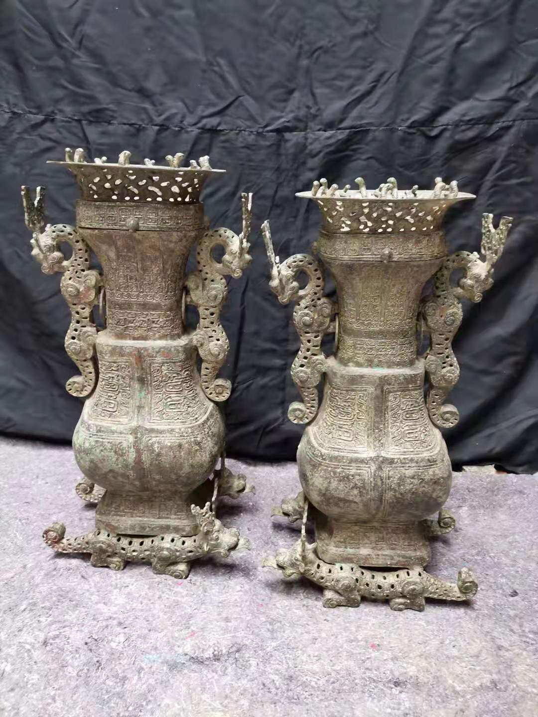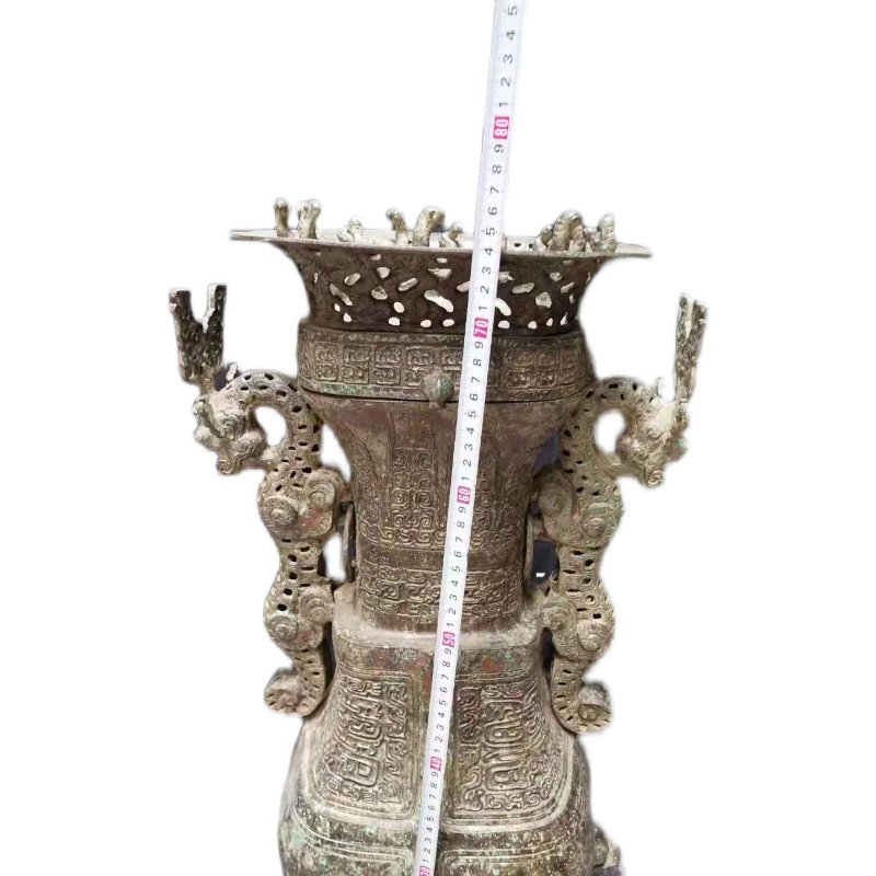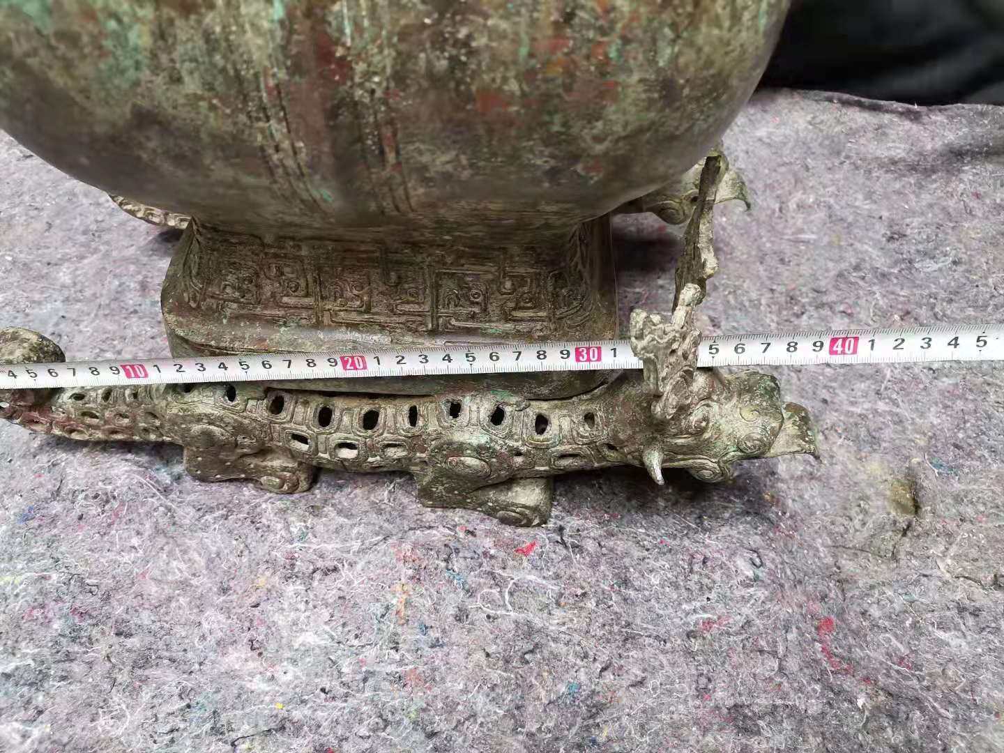 Antique bronze inscription large-copy commercial double veterinary pot paint ancient antique piece