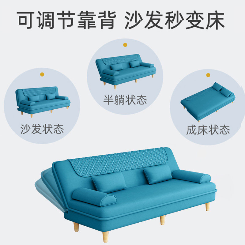 Sofa bed dual-purpose foldable multi-function double three-person small apartment rental living room lazy fabric sofa