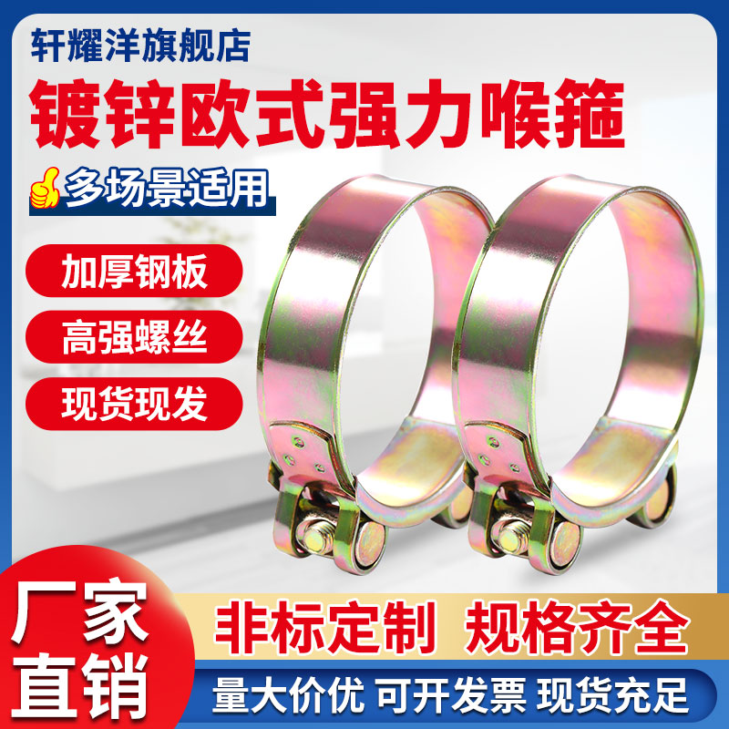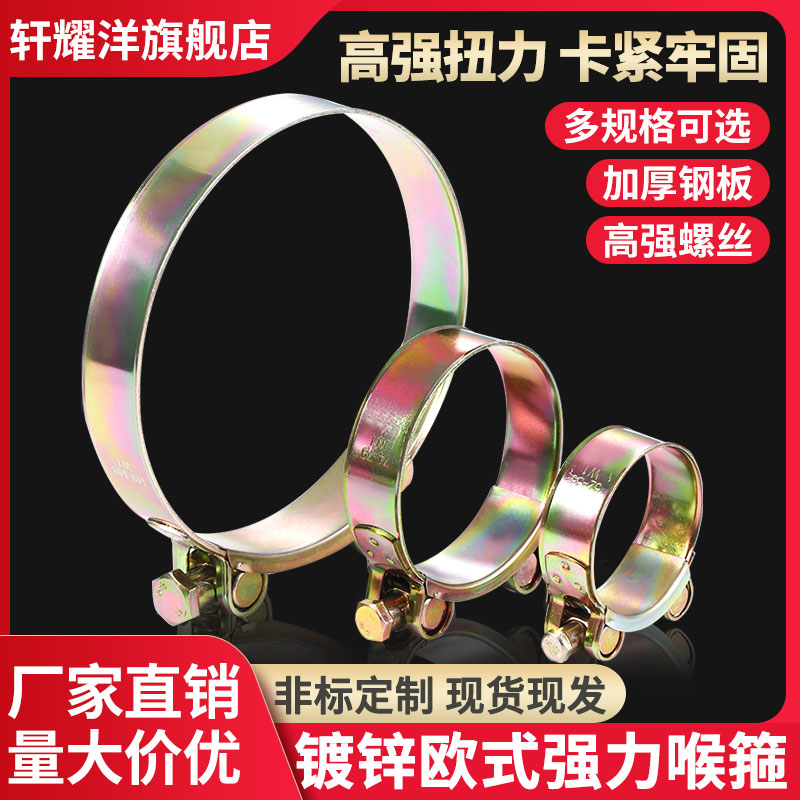 Iron-galvanized European-style powerful throat stirrup thickened pipe hoop heavy pipe clamp hoop hoop tight hoop water pipe steel wire pipe