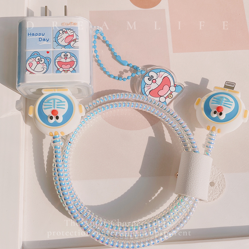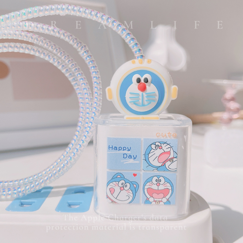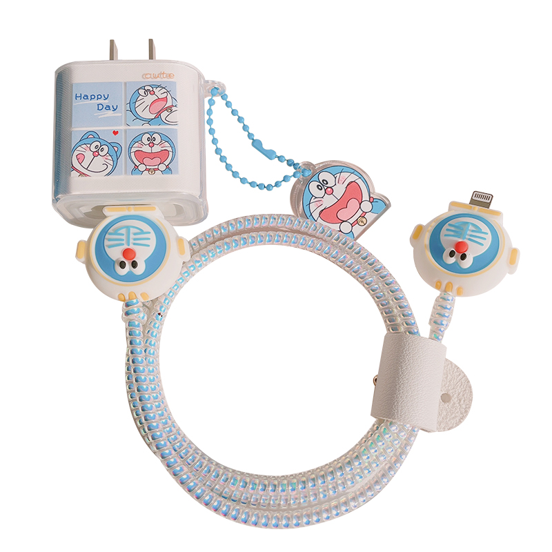 Applicable to Apple 12 data cable protective cover 20W charger transparent protective case robot cat iphone11proiPad8