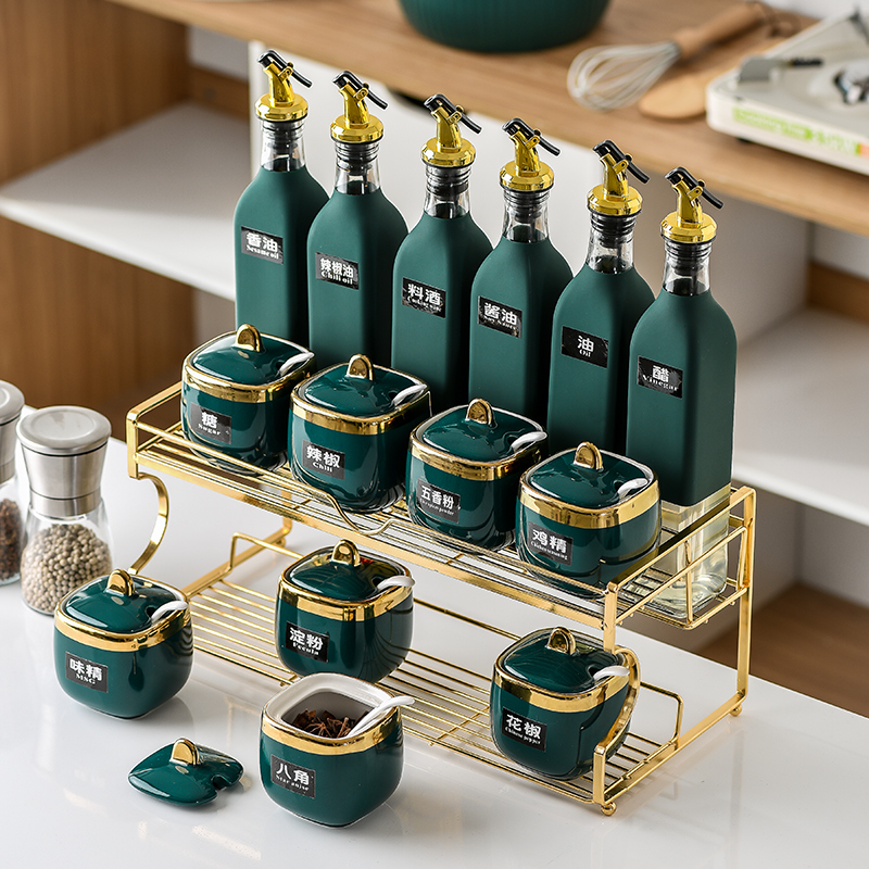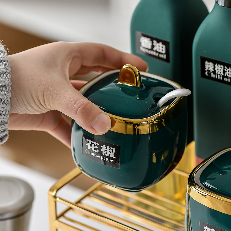 Kitchen Light Lavish Ceramic Seasoning Box Soy Sauce Bottle Composition Suit Home Seasoned Jars Net Red Seasoning Jar