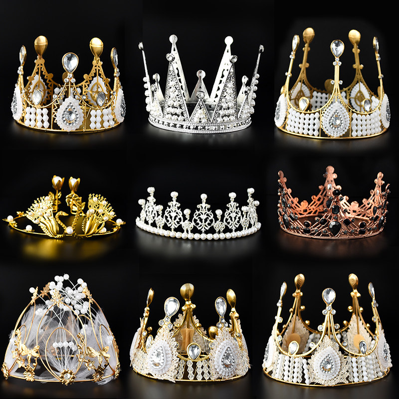 Ten decorated red crown cake decoration for adult children's crown wedding queen with starry pieces