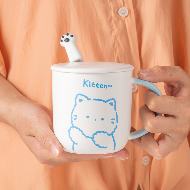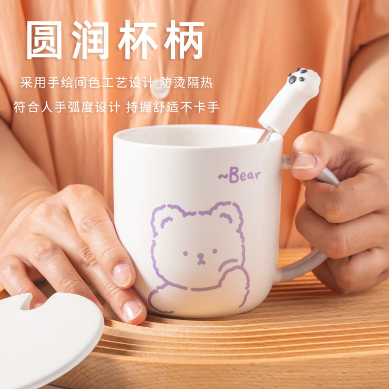 Mug with lid spoon ceramic cup cute girl couple pair home student milk breakfast coffee cup
