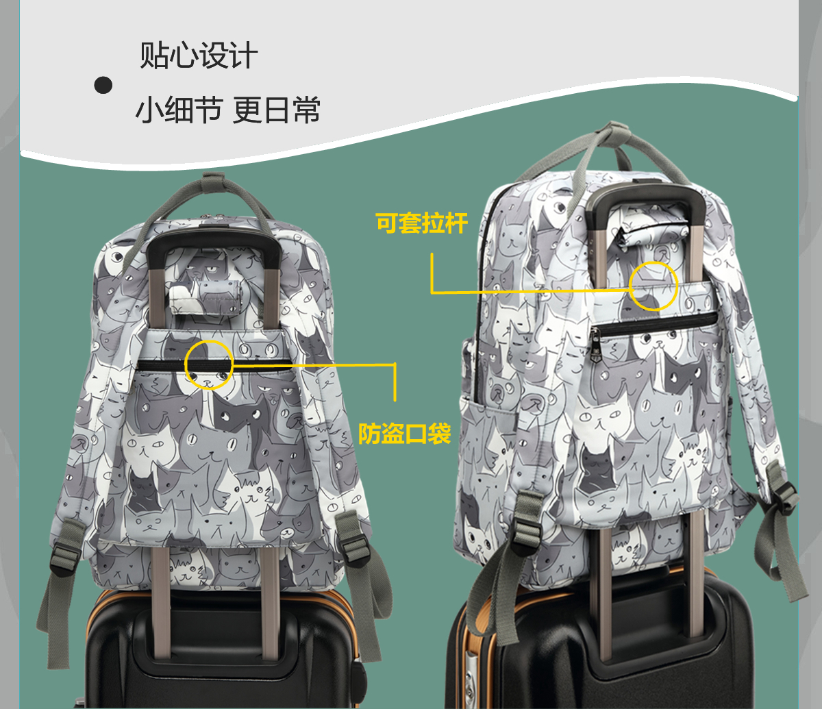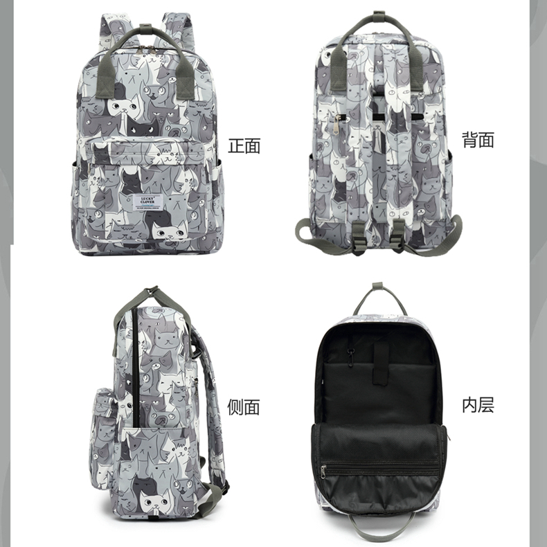 Han Edition Waterproof Printed Double Shoulder Bag Casual Backpack Female Campus Junior High School Middle School Students Bag Men's Sleeve Pull Rod Computer Bag-Taobao