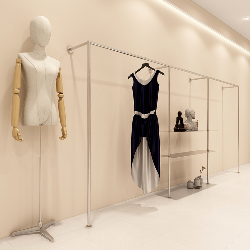 Clothing Store Show Shelf Display Rack Upper Wall Hanging Stainless Steel Silver Hanging Clothes Hanger Children's Clothing Shop Shelves