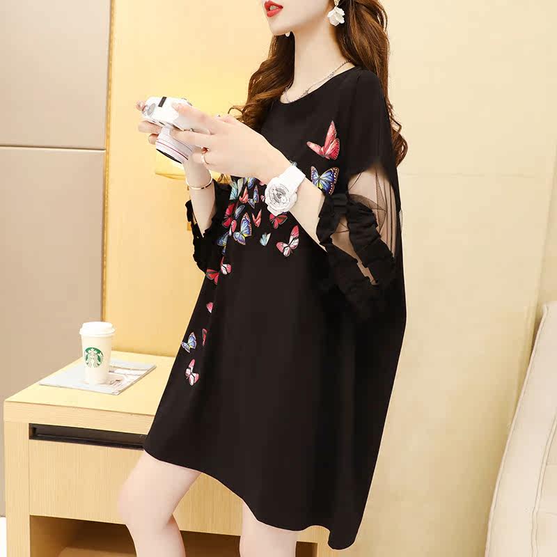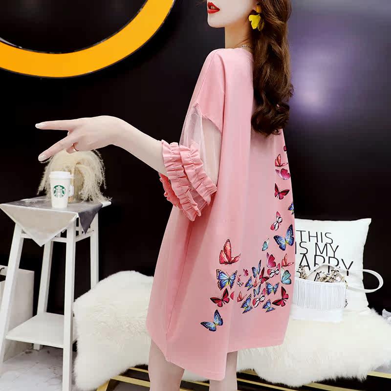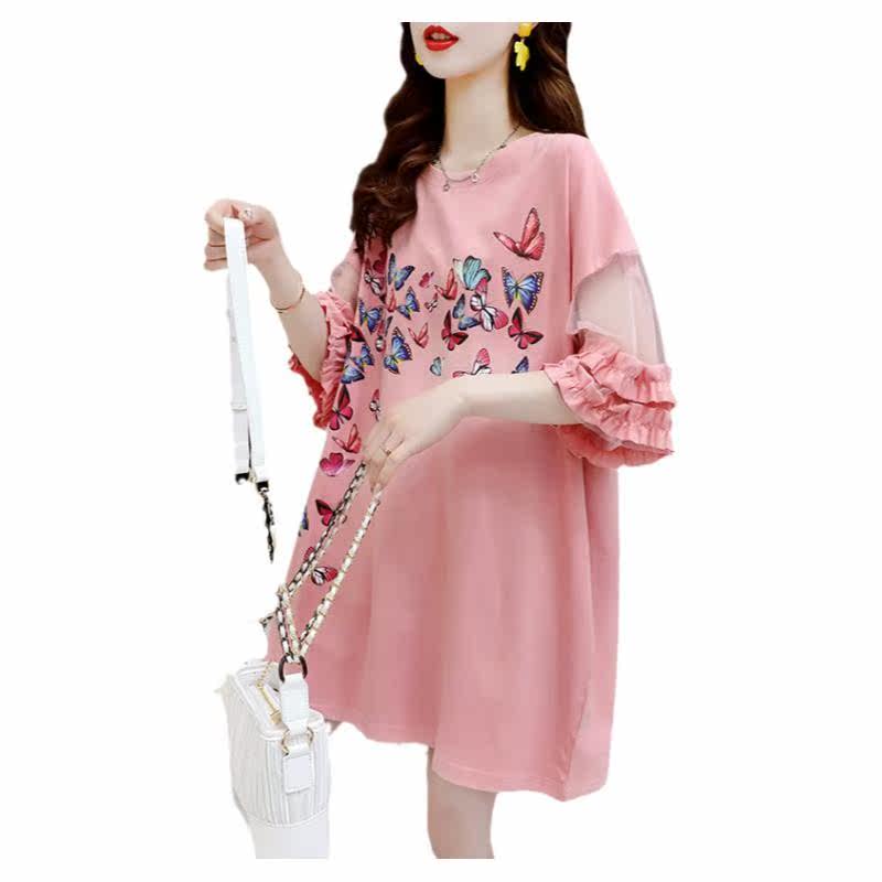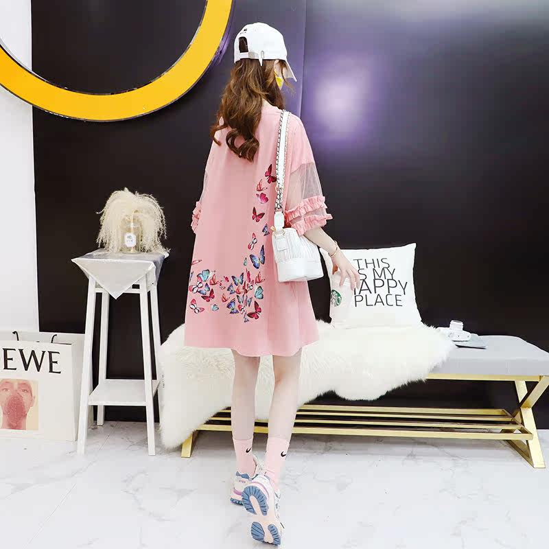 Tide - brand medium - long - edition splicing mesh half - sleeve T - shirt lazy wind summer 2022 new blouse blouse short - sleeve tops