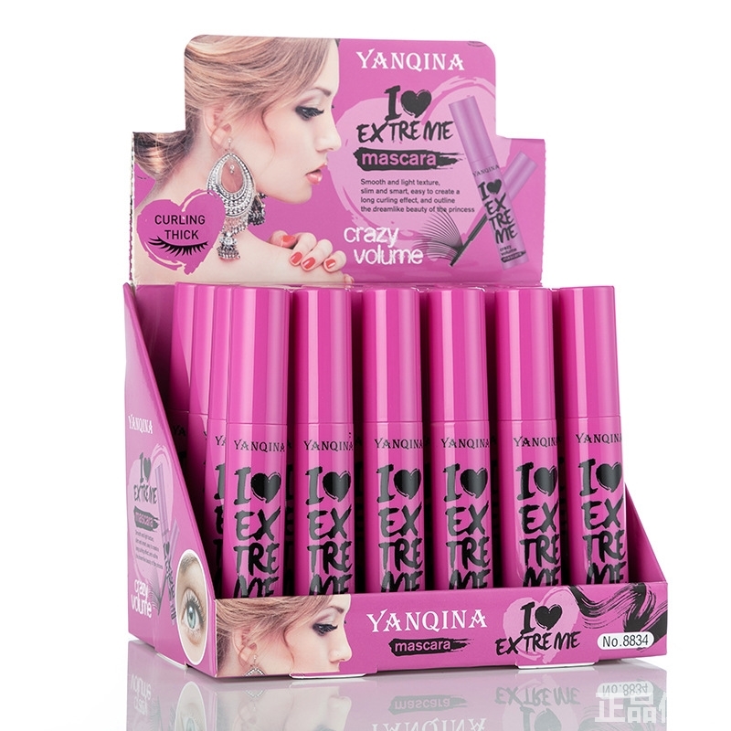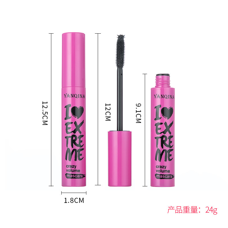 Yanqina black mascara silicone brush elongated thick curly powder rod mascara square watercolor makeup 8834