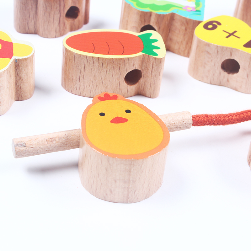 Baby children string beads to line rope and intellectual wood block toys 3 babies early teaching 1 2 year old boy and girl 4