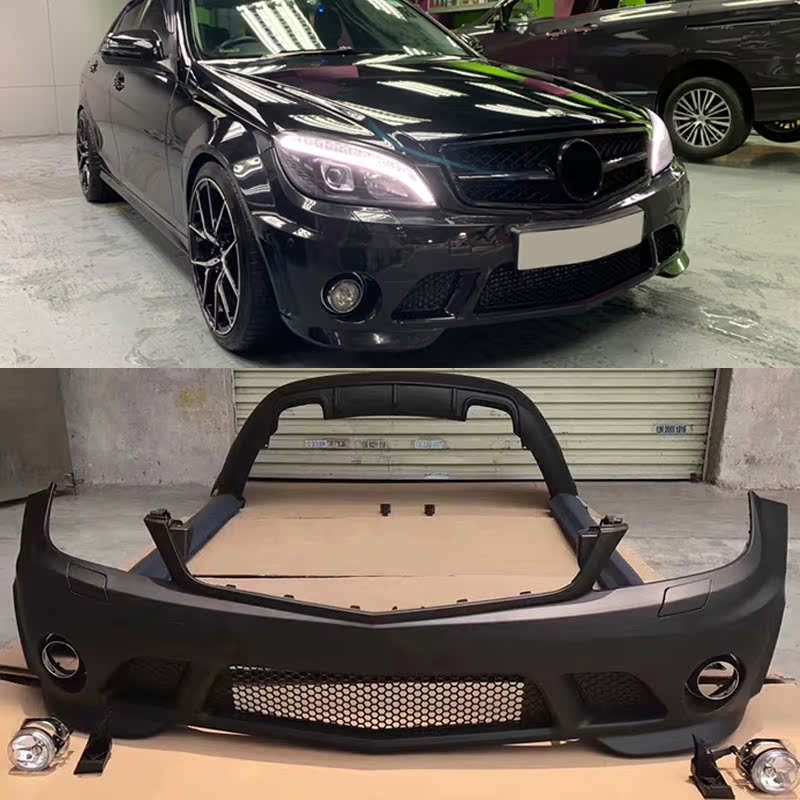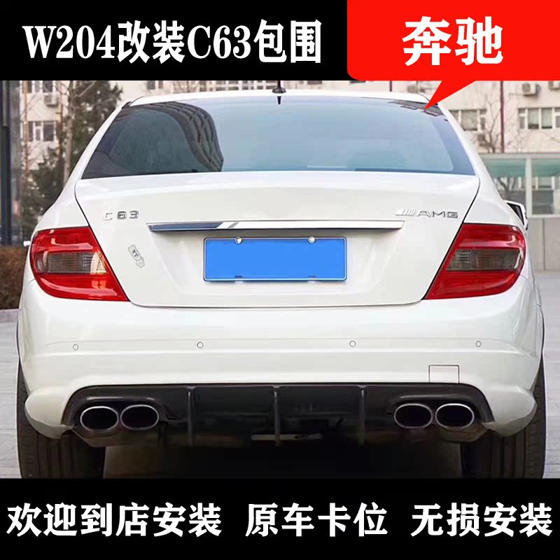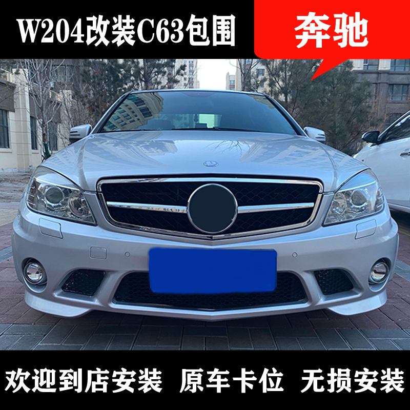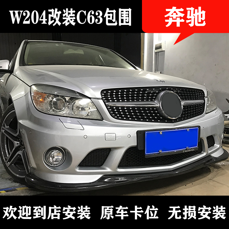 The whole set surrounds the front bumper assembly, the rear bumper assembly, the side skirts, the four-out tail throat, the carbon fiber hood, the fog lamps, a pair of AMG mesh carbon fiber front lip, and the living room lights. A pair of resin hoods are installed at the store