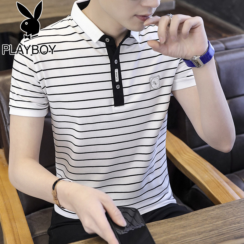 Flowers Playboy 2021 Summer short sleeve Polo shirt for men Han version Chauded high-end thin strip turtlenecks T-shirt