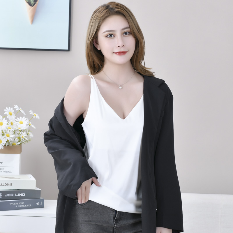 Ice Ribbon Harnesses Vest Woman Pure color 100 lap loose outside wearing bottom blouse Summer V collar matching suit Nets sexy