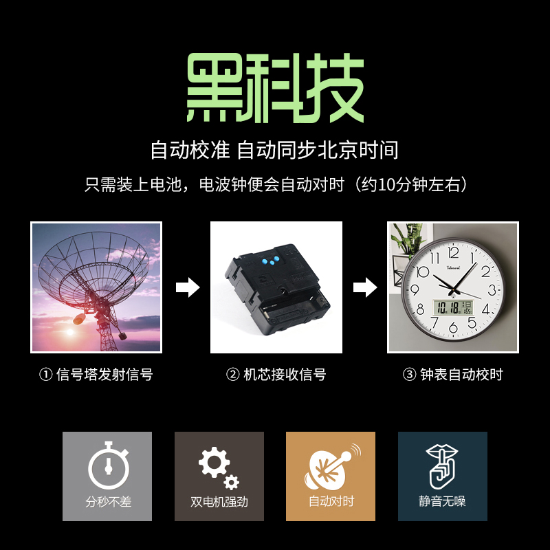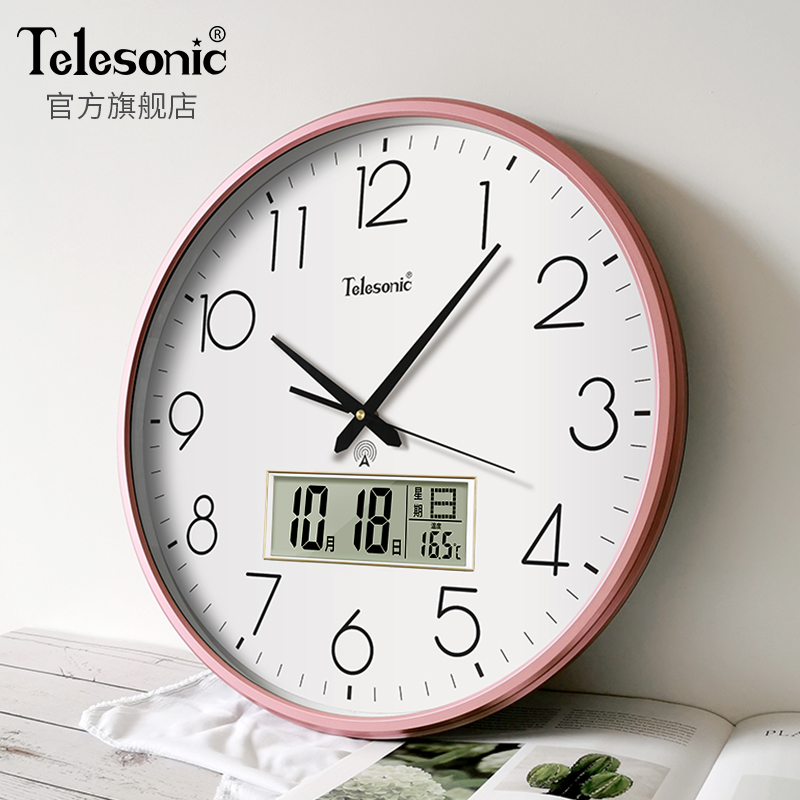TELESONIC Uranus radio clock Large size living room wall clock Calendar Silent wall clock generation home watch