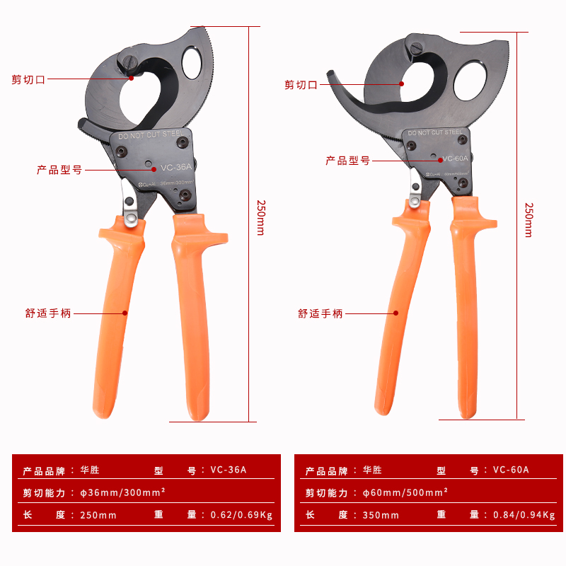 Huasheng tool ratchet type with gear manual cable cutting cable cutting wire clamp wire scissors VC-36A 60A