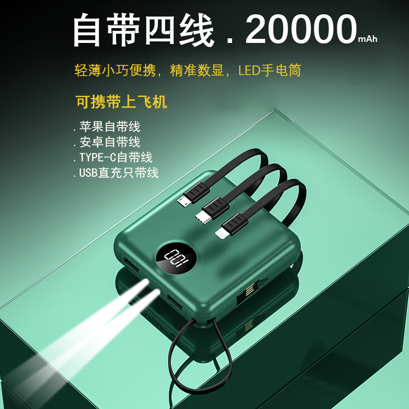 Bring your own line mobile charging 20000 milliamslim light portable and small Mini cute large capacity Quick charge applicable Xiaomi Apple Huawei VIVO mobile phone three-in-one 4-4 outdoor action power supply