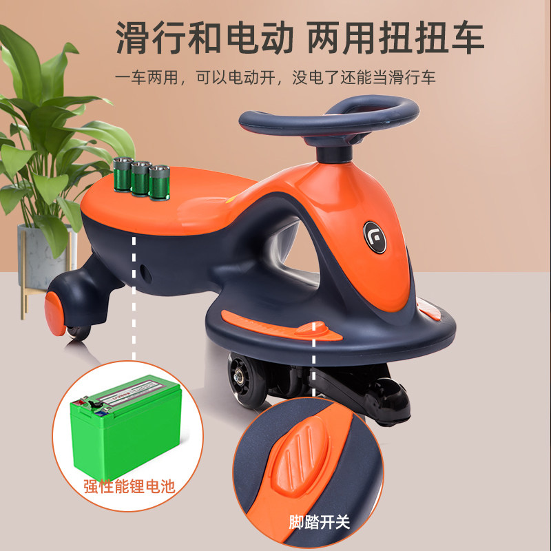 Children's twisting car anti-rollover children's electric car adults can sit on the slippery car