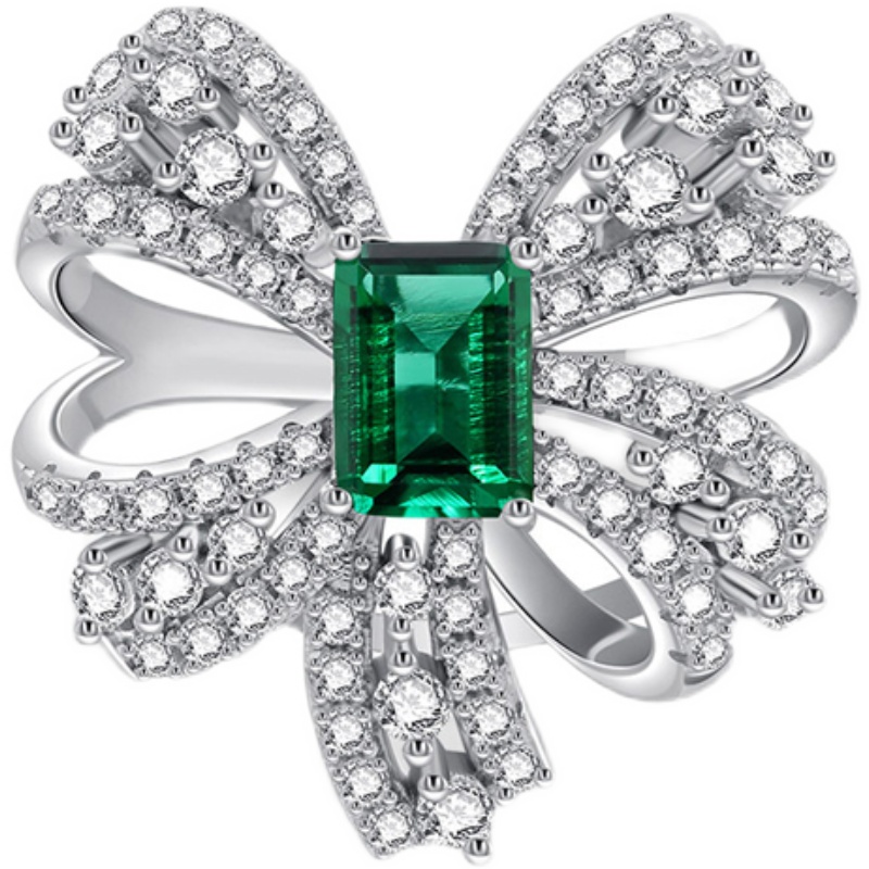 Zumma Green Gem Butterfly Knot Ring Lady 18K Platinum Temperament Group Inlaid Mosanshi Advanced Sensuite Wedding Finger Woman