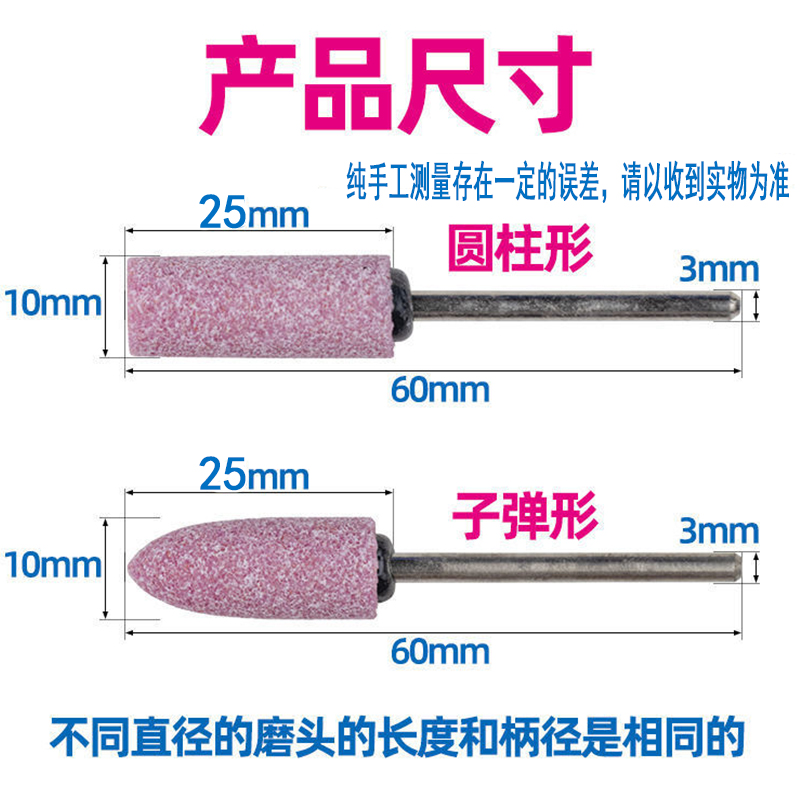 Lengthened rod flint grinding head metal grinding and polishing ceramic grinding head small electric drill with red corundum grinding wheel 3MM handle