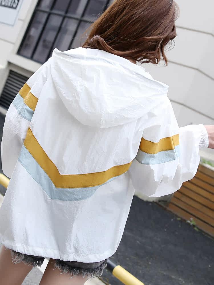 Sunscreen clothing women's long-sleeved Korean version loose thin sunscreen shirt color matching V-shaped short sunscreen clothing 2021 summer new